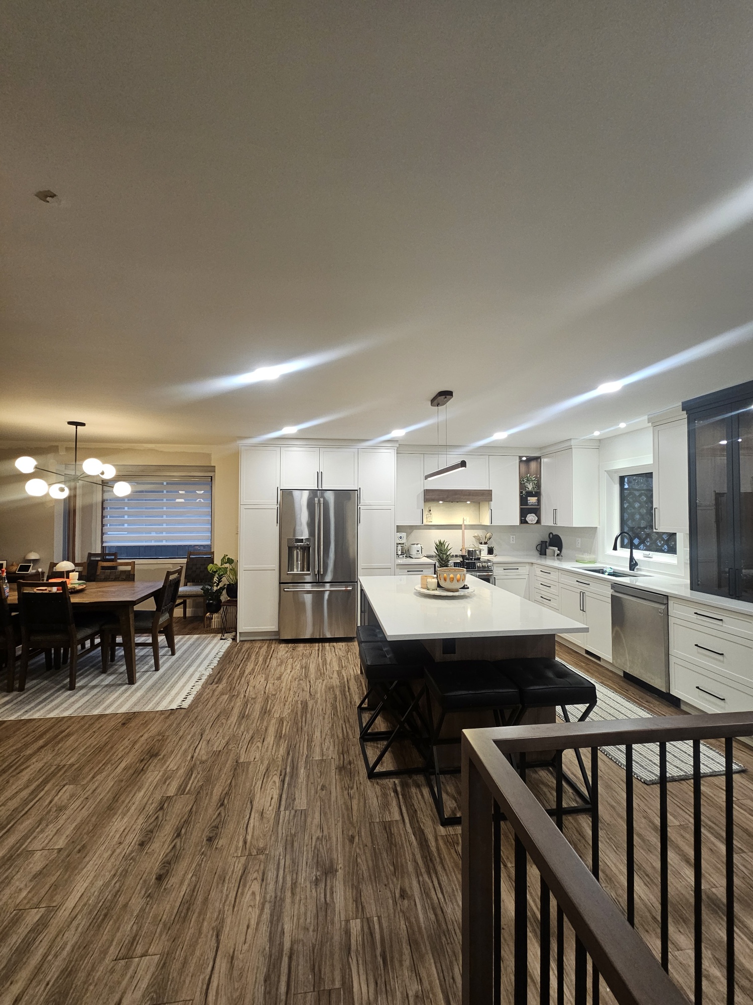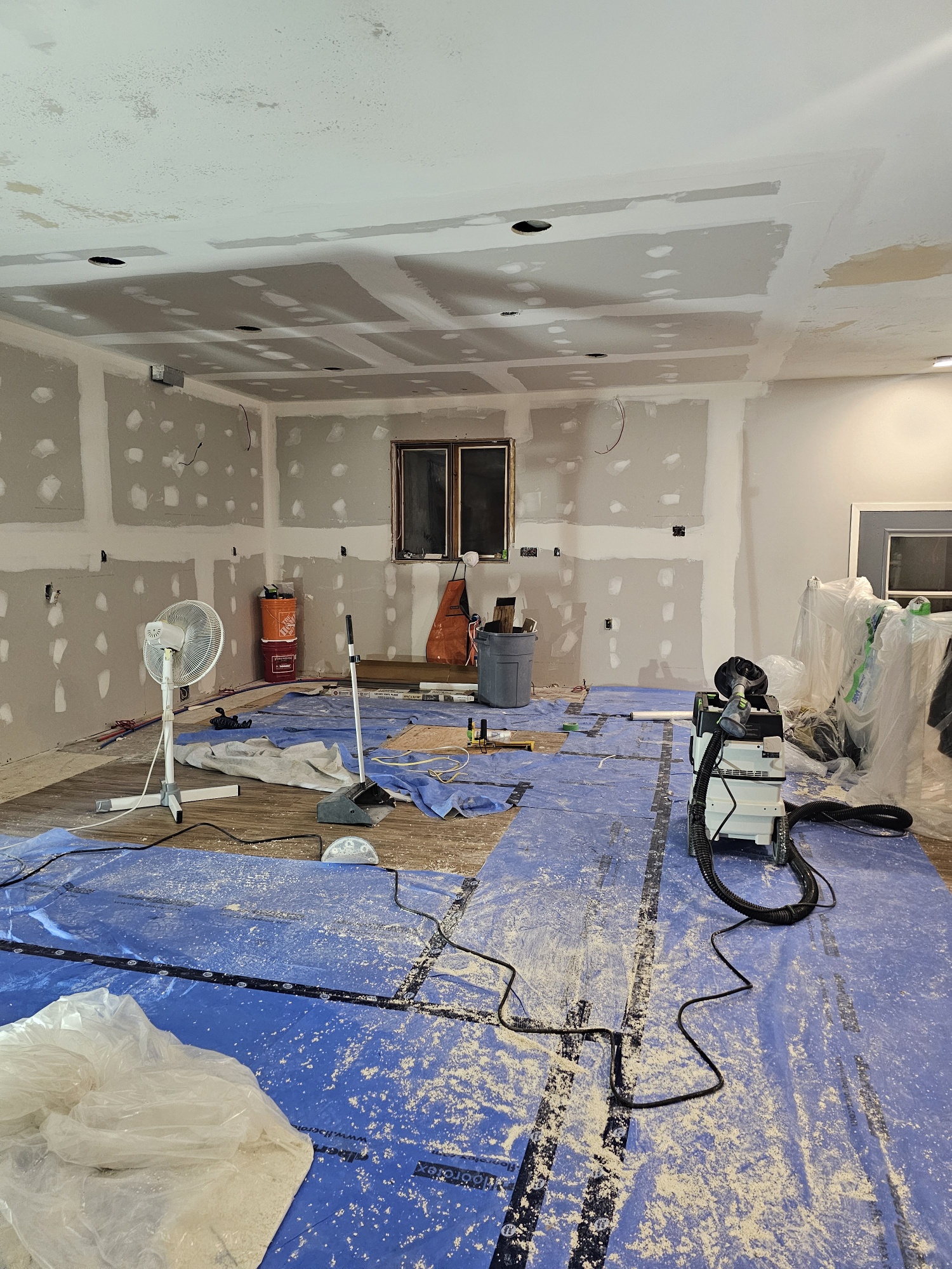 This home renovation project includes drywall installation and finishing, custom countertop replacement, and structural framing updates. The goal is to modernize interior spaces while enhancing structural integrity and aesthetic appeal throughout the home.